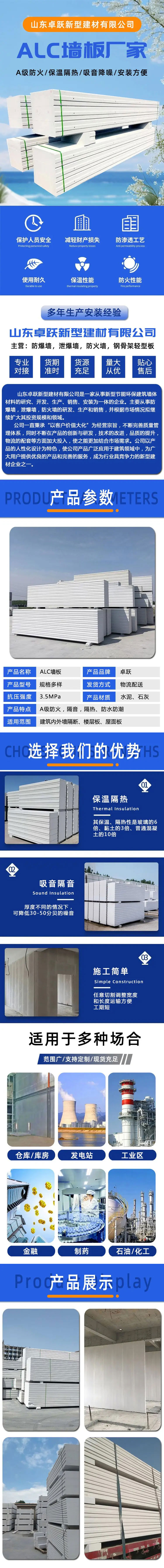 胶州装配式轻质隔墙板 alc条板 商场分室隔断 建筑内外墙专用